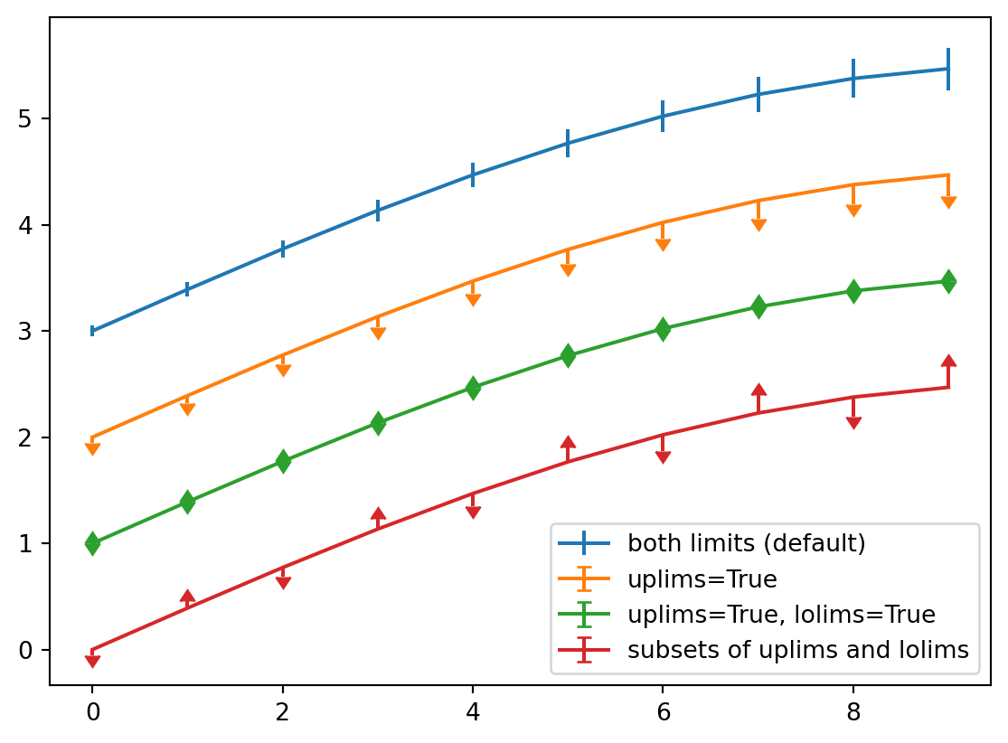 plt.errorbar(x, y + 3, yerr=yerr, label='both limits (default)')
